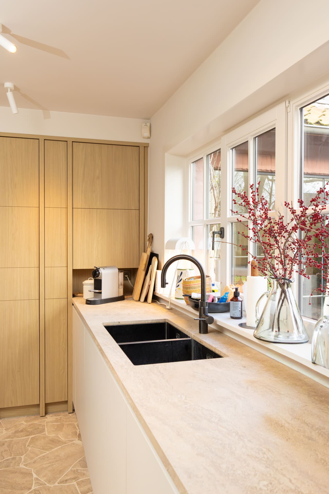 - Werkblad in dezelfde steen als de vloer